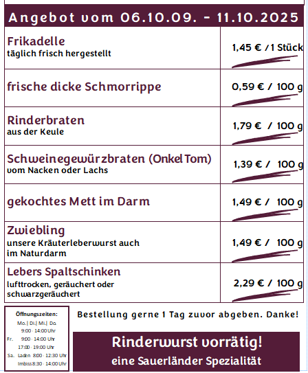 Unsere Fleischerzeugnisse werden nach bester handwerklicher Tradition hergestellt. Hierzu verwenden wir ausgesuchtes Qualitätsfleisch, frische Zutaten und erlesene Gewürze.